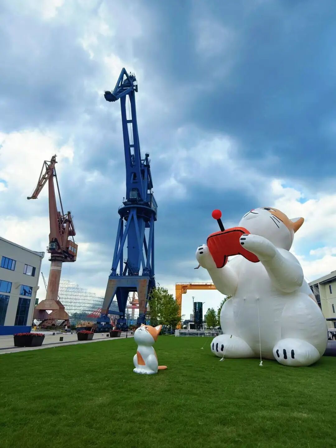 巨型“猫咪”仰望天空从地铁12号线复兴岛站2号口出来