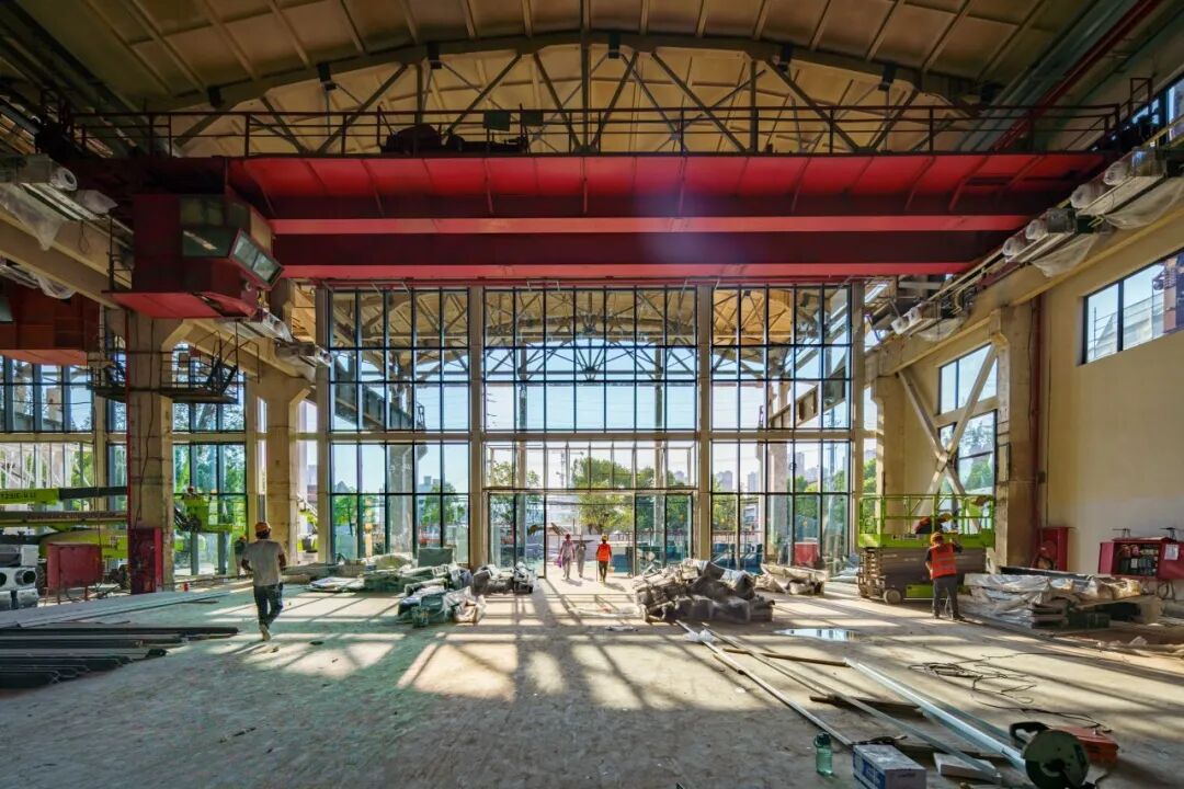 复兴岛上的广场、绿地和亲水空间以及工业厂房都将变身为艺术舞台!多位院士和国内外艺术家带来一系列建筑更新与公共艺术装置在室内展区——A馆复兴云厅、B馆复兴艺廊和C馆复兴实验场还将有兼具沉浸感与互动性的嘉年华式体验正在布展中的A馆复兴云厅